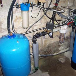Jedná se o rodinný dům (chatu) s vrtanou studnou. Rozbor vody ukázal vysokou tvrdost vody 3,18 mmol/l (17,8°N) - DH 2-3,5 mmol/l, drobně nadlimitní železo 0,21 mg/l (MH 0,2 mg/l) a nadlimitní bakterie, které si zákazník bude řešit sám sanováním savem. Do technické místnosti v suterénu byl nainstalován změkčovací filtr A 35 K G1" Standard, který snižuje tvrdost vody a drobné železo. V místě instalace se nachází elektrika, plastové potrubí, před tlakovou nádobou G1" a za tlakovou nádobou G3/4", tlaková nádoba cca 20lit. a tlakový spínač. Pro bezproblémový chod filtru byl na vstup nainstalován Atlas filtr 10" se sítovou vložkou a na výstup Atlas filtr 10" G1" s 5mcr.vložkou.