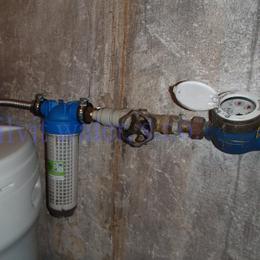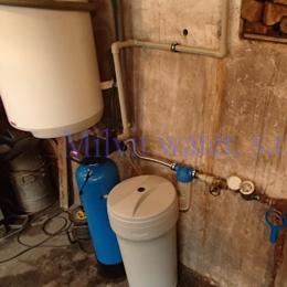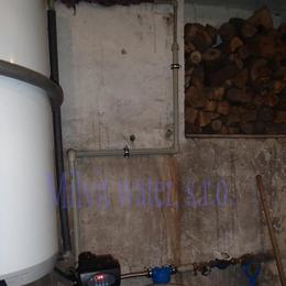 Rodinný dům s obecním vodovodem a tvrdou vodou. Jelikož obecní voda je hlídaná, nejsou v ní žádné nadlimitní hodnoty. Pouze tvrdost vody není hlídaná, jelikož není omezená maximem. Tvrdost vody má pouze doporučovanou hodnotu. Při instalaci bylo naměřeno 3,57 mmol/l (20°N) - DH 2-3,5 mmol/l. Do technické místnosti ve sklepě naše firma nainstalovala automatický změkčovací filtr A35K standard. V místě instalace se nachází potrubí v plastu, odpad je skrz zeď nad sklepem napojen do dřezu, elektriku si zákazník vyřešil prodlužovákem. Pro bezproblémový chod filtru byl nainstalován na vstup Atlas filtr 10" se sítovou vložkou.