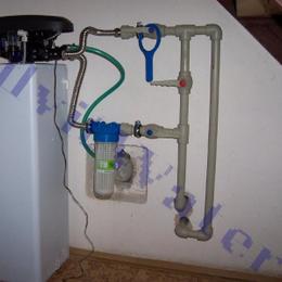 Zákazník si stěžoval před montáží na nízký tlak vody z obecního řádu. Přál si instalovat společně s filtrem i dotlakovávací čerpadlo na zvyšování tlaku v systému. Při instalaci bylo zjištěno, že tlak vody obecního vodovodu na vstupu rodinného domu je 2,5 až 2,9 bar a že problém nebude v přívodním tlaku, ale ve starých kovových rozvodech domu. x