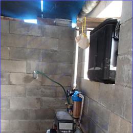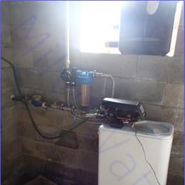 Rodinný dům napojený na veřejný vodovod Kladno. Rozborem vody byla zjištěna vysoká tvrdost vody 4,5 mmol/l (25,3 oN) - DH 2-3,5 mmol/l. Do vlhkého sklepa RD byl nainstalován za vodoměr na změkčení vody změkčovací filtr A 35 K v kabinetovém provedení. Dále byl nainstalován na celkovou ochranu filtru atlas filtr se sítovou vložkou na odstranění mechanických nečistot a tlakový regulátor na úpravu vstupních hodnot tlaku. Filtr byl připojen ve výklenku z důvodu malého místa přez bypasový trojcestný ventil a nerezové hadice G1". Majitel si může regulovat tvrdost vody podle potřeby. Výstupní hodnota tvrdosti vody je 6 oN po úpravě vody. Odpadní vedení napojeno do HT potrubí pod stropem sklepa. Při regeneraci se vypustí cca 150-200 lit vody do odpadu.
