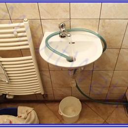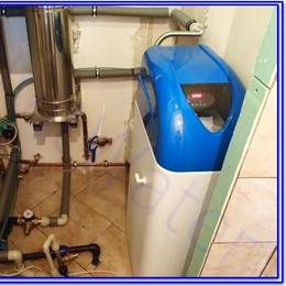 Jedná se o úpravu vody rodinného domu s obecním vodovodem. Rozbor vody ukázal extrémně vysokou tvrdost vody 5,8 mmol/l (DH 2-3,5 mmol/l. Do technické místnosti jsme nainstalovali automatický změkčovací filtr A25 K G1" v kabinetovém provedení. Aby filtr fungoval bezproblémově, nainstalovali jsme na vstup Atlas filtr 10" se sítovou vložkou. V místě instalace nebyl odpad, tak jsme odpadní hadici umístili prozatím do umyvadla.