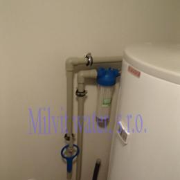 Úprava vody pro rodinný dům. Podle zjištění byla tvrdost vody středně vysoká 2,82 mmol/l (15,8°N) - DH 2-3,5 mmol/l. Do technické místnosti byl nainstalovaný automatický změkčovací filtr A30K Slim, který je užší oproti standardnímu provedení. V místě instalace se nachází potrubí v plastu, elektrika, odpad a bojler. Pro bezproblémový chod filtru byl na vstup nainstalován Atlas filtr 10" se sítovou vložkou.