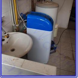 Jde o úpravu vody obecního vodovodu. Z výsledků rozboru vody se zjistila velice vysoká tvrdost vody 3,57 mmol/l (DH 2-3,5 mmol/l). Do kotelny, kde je spojení studniční vody a obecní vody, jsme nainstalovali automatický změkčovací filtr A35 K v kabinetu G1". Aby filtr fungoval bez problémů, na vstup jsme nainstalovali ATLAS filtr 10" se sítovou vložkou. Technici si vzali dle domluvy dvě varianty provedení(standard a kabinet), zákazník se na místě rozhodl pro kabinetové provedení. V místě instalace bylo více možností, kam jsme se mohli napojit s odpadní hadicí, nakonec jsme zvolili sifon umyvadla.