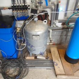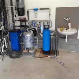 Jedná se o úpravu vody v rodinném domě. Rozbor vody ukázal extrémně vysokou tvrdost vody 5,6mmol/l (31,36°N) - DH 2-3,5 mmol/l, nadlimitní množství dusičnanů 73,6 mg/l (MH 50 mg/l, kojenci do 15 mg/l) a nadlimitní množství bakterií. Do garáže byl nainstalová změkčovací filtr A35K standard s dávkovacím čerpadlem ET 02/06 - časové. V místě instalace se nachází tl.nádoba, odpad v HT, elektrika a potrubí v plastu. Pro bezproblémový chod filtru byl na vstup nainstalován Atlas filtr 10" se sítovou vložkou. Do kuchyňské linky byla nainstalována reverzní osmóza včetně mineralizátoru.