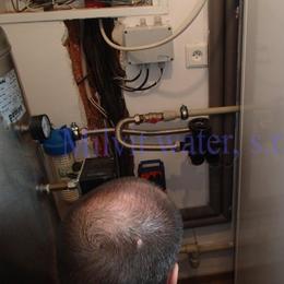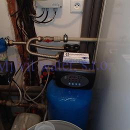 Jedná se o úpravu vody pro rodinný dům s vrtanou studnou. Tvrdost vody je dle rozboru vody velice vysoká 3,7 mmol/l (20,7°N) - DH 2-3,5 mmol/l a byly naměřeny nadlimitní Koliformní bakterie. Do technické místnosti byl nainstalován automatický změkčovací filtr A35K standard s dávkovacím čerpadlem ET 02/06. V místě instalace se nachází tlaková nádoba 200 lit., tlaková spínač, plastové potrubí, elektrika, zeď Porotherm a odpad od tepelného čerpadla vedle v místnosti skrz zeď. Pro bezproblémový chod filtru byl na vstup nainstalován Atlas filtr 10" se sítovou vložkou.