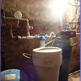 Jde o úpravu vody kopané studny rodinného domu. Dle rozboru vody byla naměřena extrémně vysoká tvrdost vody 6,3 mmol/l (DH 2-3,5 mmol/l). Proto jsme do sklepa nainstalovali automatický změkčovací filtr A35K standard G1". Aby filtrace fungovala bez problémů, na vstup jsme nainstalovali ATLAS filtr 10" se sítovou vložkou. Odpad byl vyveden odpadní hadicí ven na zahradu, zákazník si to v zimě bude řešit jinak, aby nedošlo k zamrznutí.