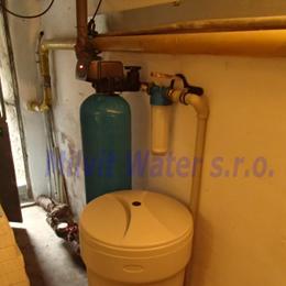 Jedná se o úpravu městské vody pro potřeby 3 bytů a prodejny. Tvrdost vody naměřena 16°N (2,86 mmol/l) - DH 2-3,5 mmol/l. Do sklepa byla nainstalována změkčovací automatická filtrace vody A60K standard. Pro bezproblémový chod filtru byl na vstup nainstalován Atlas filtr 10" se sítovou vložkou. V místě instalace se nachází elektrika, potrubí v plastu a odpad. Na dvě odběrá místa jsme nainstalovali Atlas filtry s UH vložkou na odstranění zápachu po chlóru.