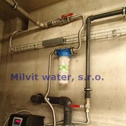 Jedná se o úpravu vody změkčením. Do technické místnosti byl nainstalován změkčovací filtr A60K G1". Pro bezproblémový chod filtru byl na vstup nainstalován Atlas filtr 10" se sítovou vložkou.