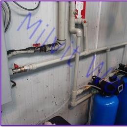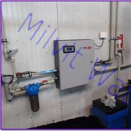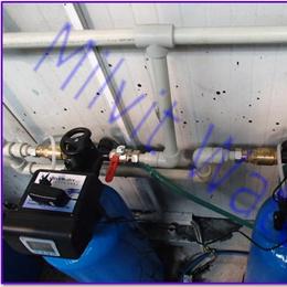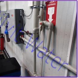 Jde o úpravu vody pro potřeby firmy s třísměnným provozem na zvlhčování vody - zarůstaní trysek. Rozbor vody ukázal velice vysokou tvrdost 3,5 mmol/l (DH 2-3,5 mmol/l), nadlimitní železo 0,937 mg/l (MH 0,2 mg/l), nadlimitní mangan 0,26 mg/l (MH 0,05 mg/l), nadlimitní zákal 16,3 ZF (5 ZF) a nadlimitní bakterie. Dle požadavku zákazníka jsme nainstalovali do firmy změkčovací filtr TWIN A 70 K 2x RX G1".