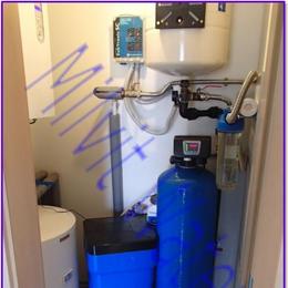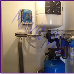 Jedná se o úpravnu vody v rodinném domě. Rozbor vody ukázal extrémně nadlimitní železo 10.0 mg/l (MH 0,2 mg/l), nadlimitní mangan 0,73 mg/l (MH 0,05 mg/l), dosti vysokou tvrdost 4,80 mmol/l (DH 2-3,5 mmol/l) a nadlimitní amonné ionty 2,4 mg/l (MH 0,5 mg/l). Do technické místnosti jsme nainstalovali odželezňovací - odmanganovací a změkčovací filtr A80 EXtreme. Aby filtr fungoval bez problémů, nainstalovali jsme Atlas filtr 10" se sítovou vložkou na vstup a na výstup Atlas filtr 10" s 5mcr. vložkou.