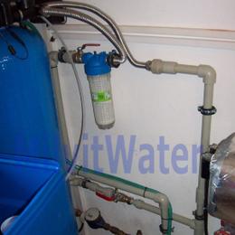 Jedná se o úpravu vody pro rodinný dům. Dle rozboru vody je extrémně vysoká tvrdost vody 7,6 mmol/l (42,5°N) - DH 2-3,5 mmol/l. Do technické místnosti byl nainstalován změkčovací filtr A 100 K G1". Pro bezproblémový chod filtru byl na vstup nainstalován Atlas filtr 10"G1" se sítovou vložkou. V místě instalace se nachází potrubí v plastu a elektrika.