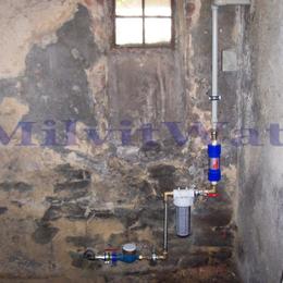 Jedná se o rodinný dům s tvrdou obecní vodou. Rozbor vody ukázal na velice vysokou tvrdost vody 3,9 mmol/l (22°N) - DH 2-3,5 mmol/l. Do sklepa jsme nainstalovali změkčovací filtr A35K G1" ve standardním provedení. V místě instalace se nachází odpad, elektrika, potrubí v kovu a plastu a již nainstalovaný filtr na mechanické nečistoty.