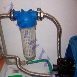 Dvougenerační rodinný dům s velmi tvrdou obecní vodou. Dle rozboru vody byla naměřena extrémně vysoká tvrdost vody 6 - 6,4 mmol/l (33,6 - 35,8°N), DH 2-3,5 mmol/l. Do sklepa za přívod vody byl nainstalován změkčovací filtr A 35 K v kabinetovém provedení. Odpad byl veden skrz 2 zdi pod stropem do HT 60. Elektrika se nacházela v místě instalace a rozvody v domě jsou v plastu. Na ochranu provozu filtru byl nainstalován Atlas filtr 10" G1" se sítovou vložkou na odstranění mechanických nečistot. Výstupní hodnota byla nastavena na 5°N. Filtr se regeneruje regenerační solí.