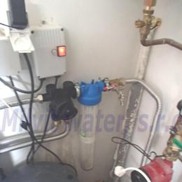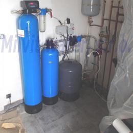 Rodinný dům s vrtanou studnou, nízkým pH 5,8 (6,5 - 9,5), nadlimitním železem 1,38 mg/l (MH 0,2 mg/l) a zákalem 24 ZF (MH 5 ZF). Do technické místnosti byl nainstalován poloautomatický filtr PA35pH na zvýšení pH a automatický filtr A60P300 na odstranění železa a zákalu. Pro bezproblémový chod filtru byl na vstup nainstalován Atlas filtr 10" se sítovou vložkou a na výstup Atlas filtr 10" s 5mcr.vložkou. V místě instalace se nachází tlaková nádoba cca 30-40 lit. a elektrika. Frekvenční měnič s tlakovým snímačem.