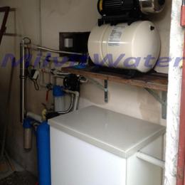 Jedná se o úpravu vody pro rodinný dům s vrtanou studnou. Dle rozboru vody je pH nízké a bakterie nadlimitní. Do technické místnosti byl nainstalován filtr na zvýšení pH R35pH a pro bakteriologickou nezávadnost vody UV lampa SC12. Pro bezproblémový chod filtru a UV lampy byl na vstup nainstalován Atlas filtr 10" se sítovou vložkou a na výstup Atlas filtr 10" s 5mcr.vložkou.