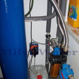 Jedná se o rodinný dům s vrtanou studnou a vodou využívanou jako užitkovou a na zalévání. Rozbor vody ukázal na nízké pH 5,0 (6,5 - 9,5) a vysoké množství železa 1,6 mg/l (MH 0,2 mg/l). Do technické místnosti byl nainstalován filtr na zvýšení pH R 60 pH a odželezňovací filtr A 100 D G1" s dávkovacím čerpadlem ET-časové 02/06. V místě instalace se nachází tl.nádoba, potrubí v plastu a elektrika. Na vstup byl nainstalován Atlas filtr 10"G1" se sítovou vložkou a na výstup Atlas filtr 10" G1" s 5mcr. dočišťovací vložkou.